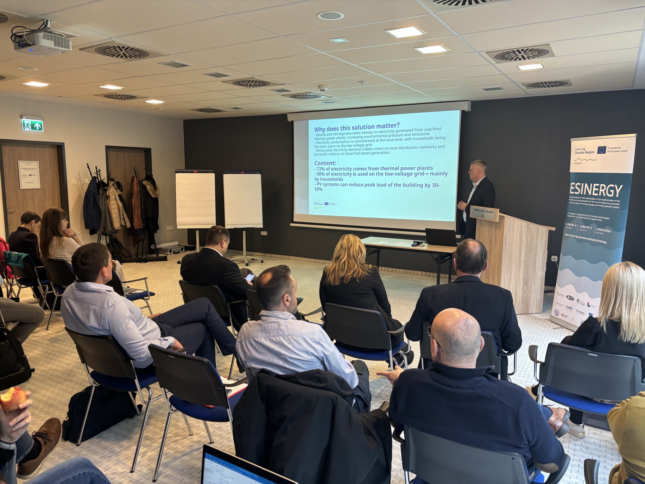 Az ESINERGY projekt partnerei 16 országból (Horvátország, Szlovénia, Ausztria, Németország, Magyarország, Szlovákia, Bulgária, Románia, Szerbia, Bosznia-Hercegovina, Montenegró és Ukrajna) 2026. február 5–6-án kétnapos transznacionális partner-találkozón vettek részt Lentiben. A találkozó célja a pilot megoldások véglegesítése, a szakpolitikai hasznosulás erősítése, valamint a projekt záró megvalósítási szakaszának előkészítése volt.